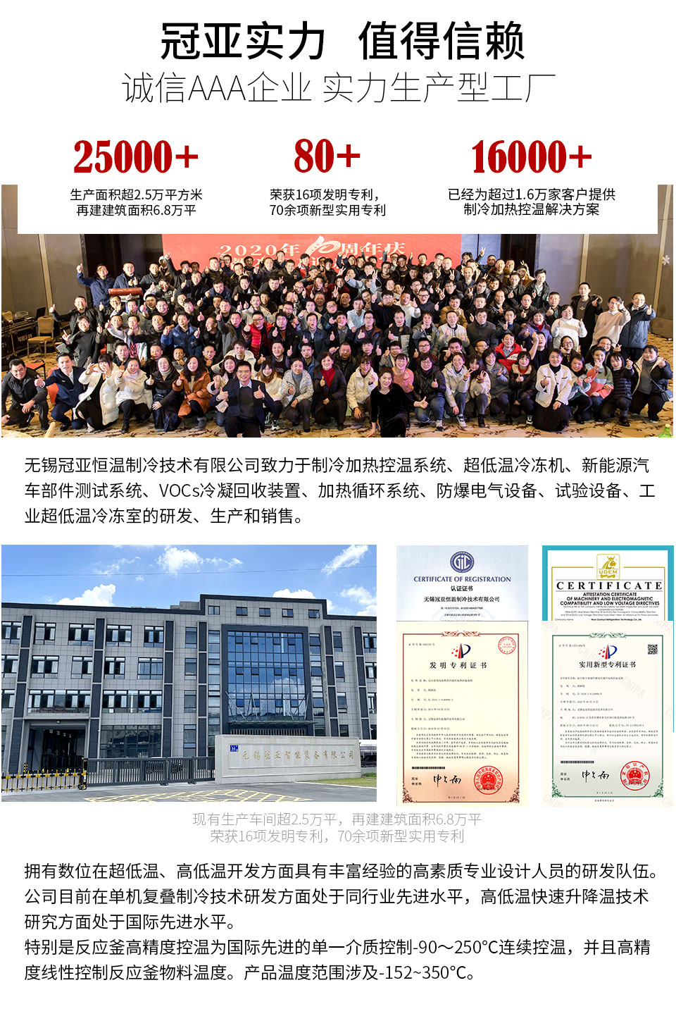 介質(zhì)溫度范圍-80℃ ~-30℃制冷劑R404A/R23或R508B膨脹罐容積100L~750L電源AC380V 50HZ24kW~588kW重量950kg~8000kg制冷量AT-75℃4KW/3440Kcal/h~180KW/154800Kcal/h